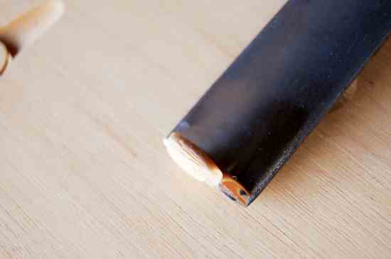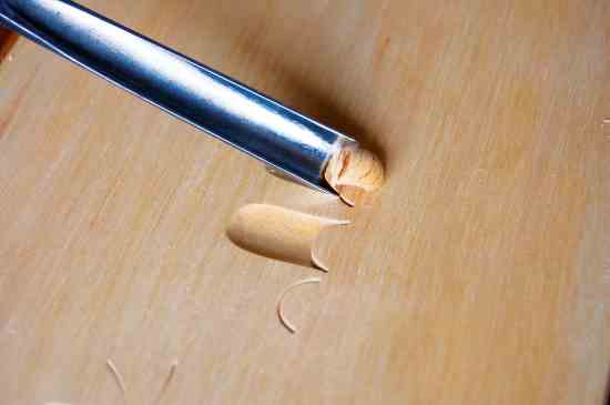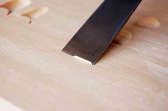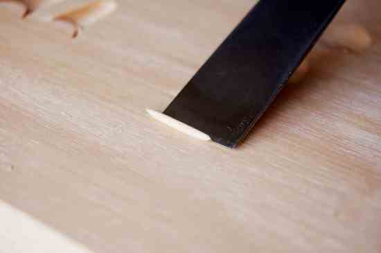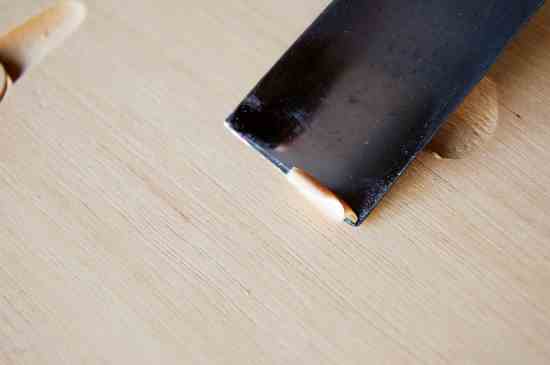 Slice from left to right and from right to left. Keep the area clean as you go along. It’s tricky at first not to dig the corners in. If you do, immediately go over the torn grain and repair the surface.
