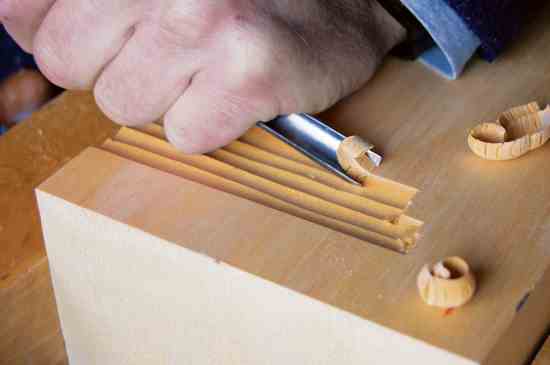 With a deep gouge (#8 or #9) run a long channel across the grain. A single deep channel like this is called a flute.