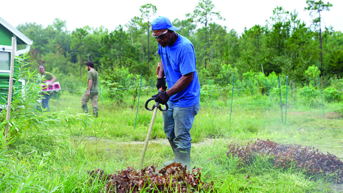 A key component of permaculture and Climate Farming is using animals to help break up the soil and provide nutrient-rich manure for your compost pile. Both pigs and chickens naturally root and scratch the ground, turning and loosening the soil in the process. Our portable chicken tractors and movable electric fences on our farm help move our chickens and pigs around based on which areas need to be “tilled.”