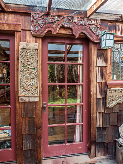 And when he moved to Bolinas, he would scour the countryside for old barns and chicken coops and talk to the farmers about tearing them down and using the materials. “A lot of times, they were just glad to get rid of them,” he says. He also got to know George Taylor, a Navy veteran who was tearing down Navy barracks on Treasure Island, a former naval station. “So, I bought a lot of the materials. In fact, this room I’m sitting in right now is pretty much entirely built of used materials from George Taylor,” he says. And almost all of the windows in his Bolinas home are used, many of them from old chicken coops. For Kahn, it was an aesthetic decision as well as a thrifty one: “I’ve always liked the looks of used wood. … So, I got used things whenever I could.”