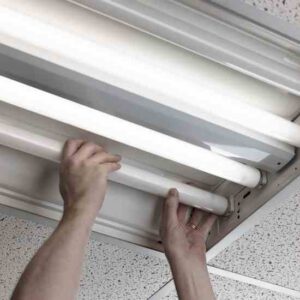 Hydrofarm manufactures a wide variety of grow-light systems for indoor gardening. The company’s tabletop fluorescent light stand consists of a simple aluminum frame supporting a fixture with two fluorescent tubes. The hanging fixture conveniently adjusts up or down with only fingertip pressure, using a spring-friction system.