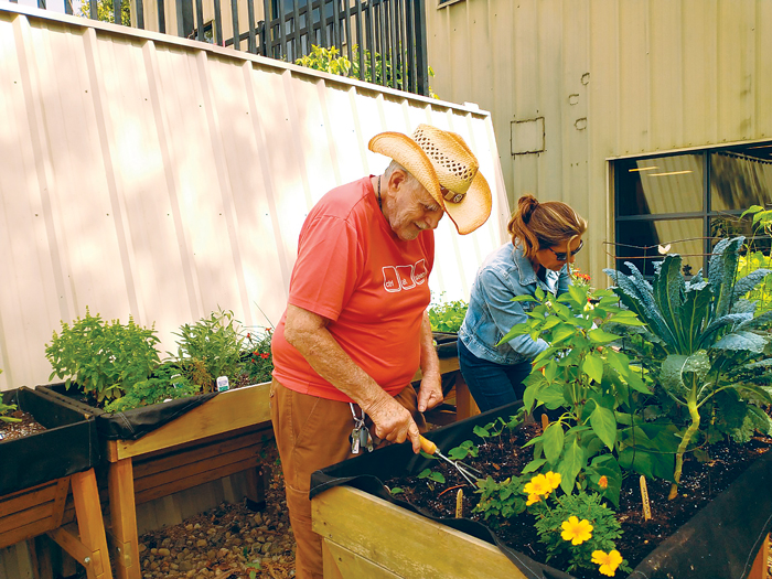 Now, people served by the agency can enjoy the garden in the courtyard and take home produce if they’re able to prepare food at home. Marvin Sweetland grew up on a farm. Now, at almost 83 years old, he enjoys the chance to use his gardening skills again. He shares, “I love to work in the garden, watering and tearing the weeds out. I can’t do gardening on the ground anymore, so these raised beds are great!”