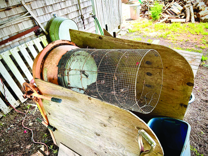 I had an old cement mixer that was useless for its intended purpose, so it sat around for several years. I saw a video on YouTube where a cement mixer was used to sift soil, so I took that concept and made a sifter using materials I had on hand. The main barrel cage is from a scrap piece of concrete remesh, and a metal trash-can cover fits perfectly over the tub opening. The cage is secured to the tub with perforated metal strapping and self-piercing screws. I wrapped the remesh cage with some 1⁄2-inch metal hardware cloth left over from a chicken project and secured it with zip ties. There’s a plastic mortar tub with a pull rope directly under the sifter, scrap plywood and random stakes make up the container box, and the old blue tote catches the rocks and debris as the barrel is lowered. I bought a piece of 1/4-inch hardware cloth that I can quickly add as a liner for a finer end product. That was $15; everything else was stuff I had. When the mortar tub is full, it acts as a sled and can easily be pulled to the garden.