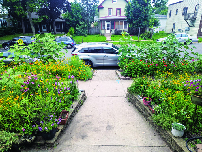 I got sick of mowing my front yard and wanted something more beautiful that would also support pollinators. So, in a couple of stages, I turned my entire front yard into a perennial and self-seeding annual flower garden. I dug up the sod, loosened my sandy soil, and added several rounds of composted horse manure.