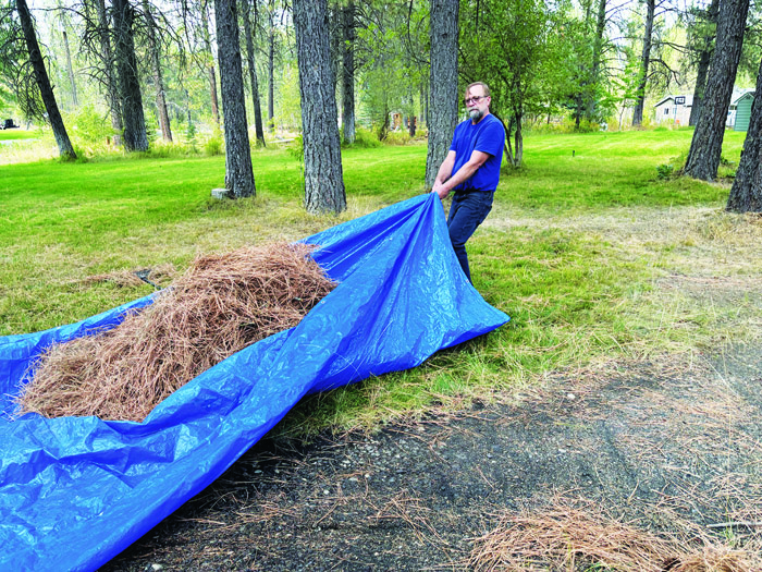 Our yard has an abundance of pine trees that shed needles in fall. My husband said moving debris with a tarp isn’t a new idea. I said if I’d read it in Mother Earth News years ago, I wouldn’t have been loading them on the bed of the pickup for so long. So, here it is. The tarp makes it much easier to move them, and it’s less back-breaking. I move loads around the yard and place the needles on plants for winter protection.