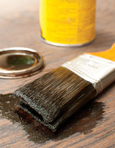 Start refurbishing your floor by finding a wood stain that matches the color of your existing floor. If you can’t find an exact match, choose a color that’s slightly darker. Experiment with the stain by rubbing it into a 1- or 2-square-foot area to see how it looks. The best wood stain I’ve found for this job, Minwax PolyShades, is actually a stain and sealer combination.