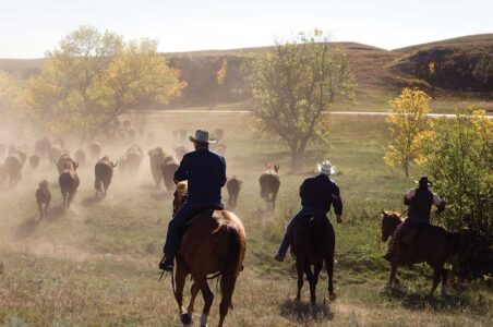 Media mogul Ted Turner was an early investor in bison, buying his first animal in 1976. He now owns herds that total more than 15,000 bison on 14 ranches, part of the 2 million acres of land he owns around the country. As his herd grew, so did the bison business. There were ups and downs. Carter says the business stumbled a bit in the 1990s when Turner’s buying drove up the price of individual animals, but the market rallied after consumers began to buy into the taste and health benefits of bison meat.