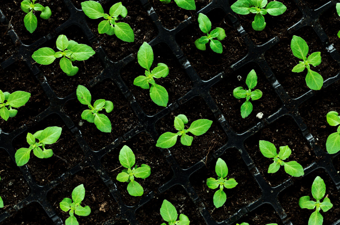You can use recycled lettuce clamshells, milk jugs cut in half — really, any container made of clear or opaque plastic. Fill each halfway with damp seed-starting mix, add a few seeds, and then lightly cover the seeds. When it’s time for the seeds to come up, they’ll come up! You won’t have to repot or harden off. I start my seeds in late winter, and I’ve found that they’ll sprout even when the cloches are covered with snow. When the weather warms and the baby plants begin pushing off the lid, I open it, give them a dose of fish emulsion, let them get stronger, and then transplant them to their new home. — Laura Johnson
